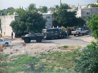 | Security patrol as viewed from the rectory during the events of May 2010 |